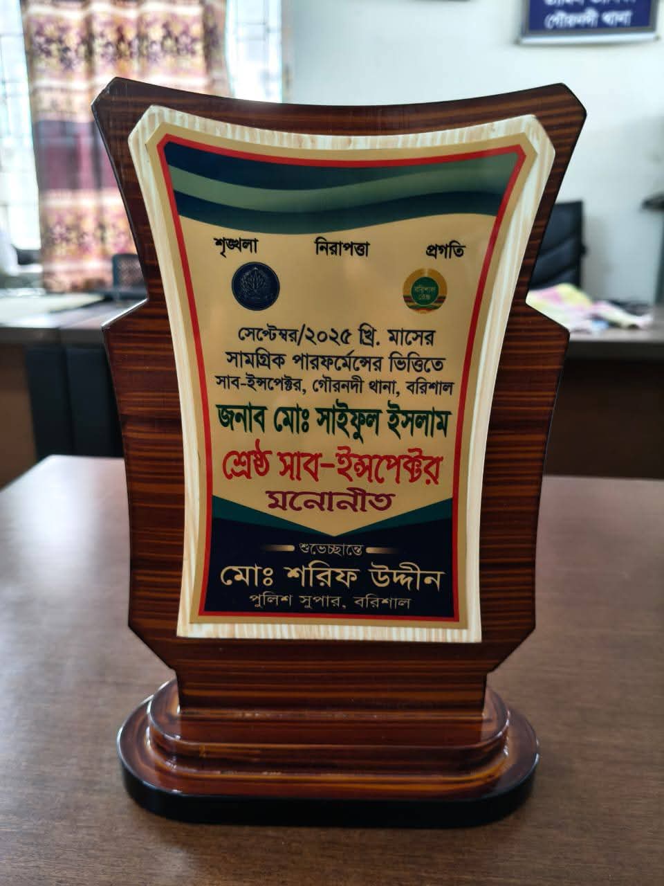 According to sources, based on overall performance for September 2025, SI Md. Saiful Islam of Gournadi Model Police Station was selected as the Best Sub-Inspector.